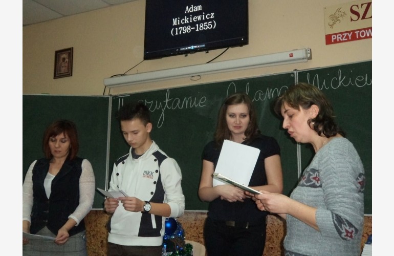 W II Grudniowym Czytaniu Utworów Adama Mickiewicza wzięła udział rekordowa liczba uczniów: 49. Oczywiście zabrzmiały strofy epopei narodowej i wiersz «Niepewność», ale też słuchaliśmy kilku fragmentów «Dziadów» cz. II i III, ballad i «Sonetów krymskich».