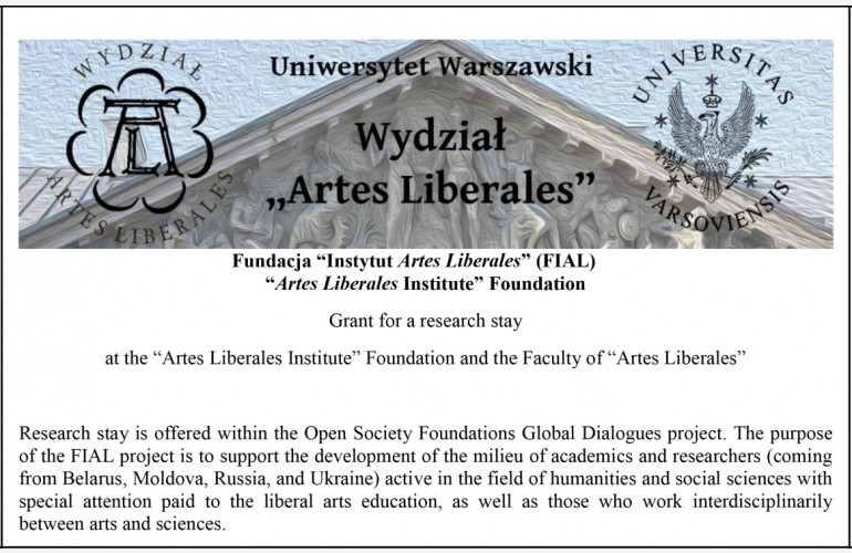 Fundacja Instytut Artes Liberales wspólnie z Open Society» organizują konkurs na otrzymanie grantu na prowadzenie badań na Wydziale «Artes Liberales» Uniwersytetu Warszawskiego.