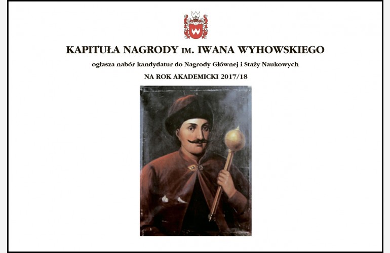 Kapituła Nagrody Im. Iwana Wyhowskiego ogłasza nabór kandydatur do Nagrody Głównej i Staży Naukowych na rok akademicki 2017/18.