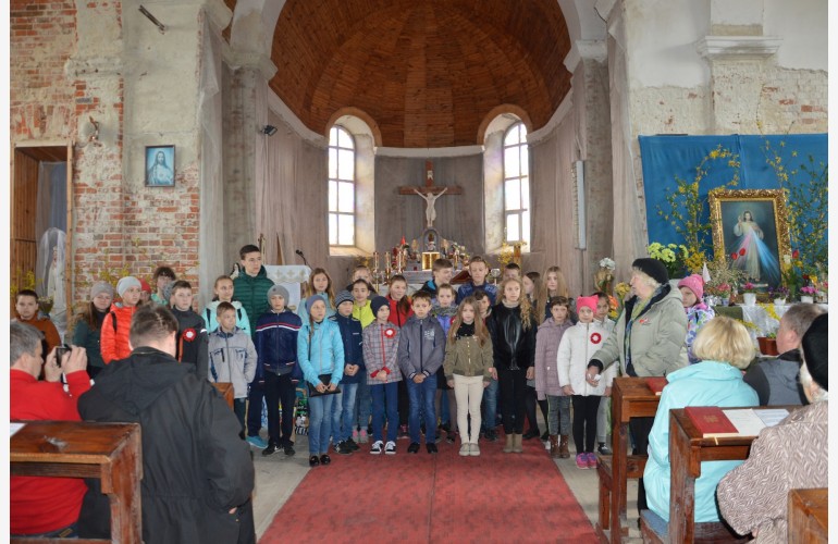 Z okazji Dnia Polonii i Polaków za Granicą, uczestnicy zawieźli na Ukrainę mnóstwo darów zebranych podczas akcji charytatywnej, którą przeprowadzili nauczyciele i uczniowie ze Szkoły Podstawowej w Rozprzy i Nowej Wsi oraz z Przedszkola w Rozprzy. Z niemałym trudem zmieściło się do autobusu 10 dużych kartonów, wypełnionych po brzegi książkami, przyborami szkolnymi oraz plecakami z pełnym wyposażeniem. W trakcie spotkania w kościele, uczniowie szkoły w Maniewiczach zaprezentowali wzruszającą część artystyczną. Recytowane wiersze oraz polskie pieśni w wykonaniu dzieci wywarły ogromne wrażenie na wszystkich uczestnikach wyjazdu. Dzieci po występie otrzymały list od uczniów Szkoły Podstawowej w Nowej Wsi, a także dary.