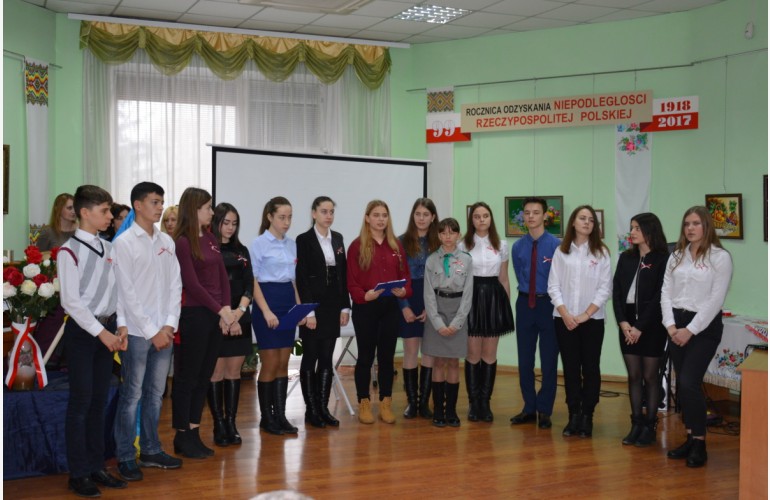 Uczniowie Szkoły Polskiej przy Towarzystwie Kultury Polskiej w Kowlu 12 listopada zaprezentowali część artystyczną przygotowaną pod kierunkiem nauczycielki i poświęconą Świętu Niepodległości Polski.
