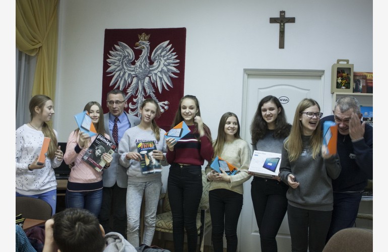 Nagrody główne na obydwa wydarzenia w szkole sobotnio-niedzielnej działającej, przy SKP im. Ewy Felińskiej na Wołyniu zostały zakupione dzięki programowi «Biało-czerwone ABC. Dofinansowanie wydarzeń uzupełniających edukację polską i o Polsce na Ukrainie» realizowanemu przez Fundację Wolność i Demokracja i współfinansowanemu w ramach sprawowania opieki Senatu RP nad Polonią i Polakami za granicą w 2017 r.