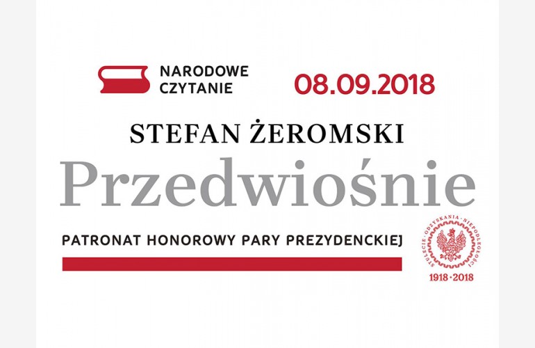 Z inicjatywy Kancelarii Prezydenta RP oraz pod Honorowym Patronatem Pary Prezydenckiej, 8 września br. odbędzie się Narodowe Czytanie «Przedwiośnia» Stefana Żeromskiego.