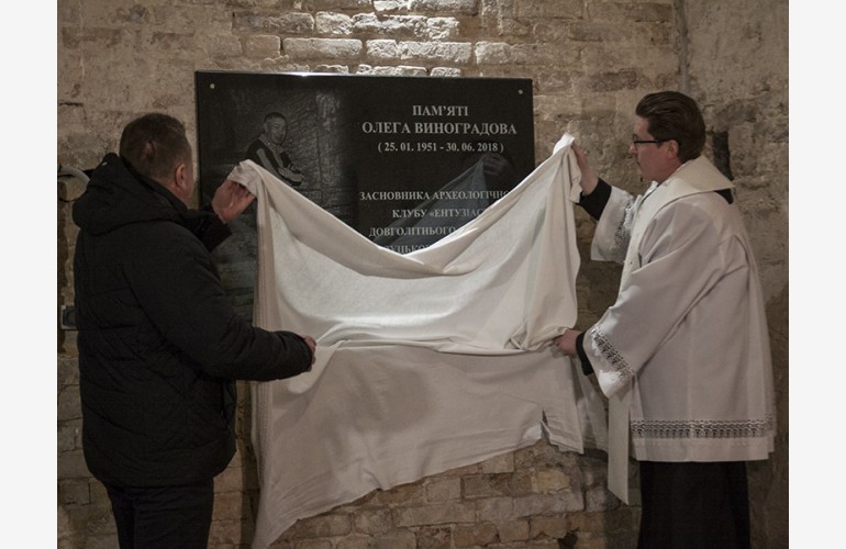 Na cześć Oleha Wynohradowa w podziemiach, które były w zasadzie jego drugim (a być może nawet pierwszym) domem, odsłonięto tablicę pamiątkową, którą poświęcił proboszcz łuckiej parafii katedralnej ks. kanonik Paweł Chomiak. Następnie głos zabrali przedstawiciele administracji Państwowego Rezerwatu Historyczno-Kulturalnego w Łucku, władz miasta i placówek edukacyjnych. Wspomnieniami podzielili się również przewodniczący Wołyńskiej Obwodowej Organizacji Narodowego Związku Krajoznawców Ukrainy Gennadij Bondarenko, rzeźbiarz Mykoła Hołowań oraz fotograf Wiktor Czuchraj.