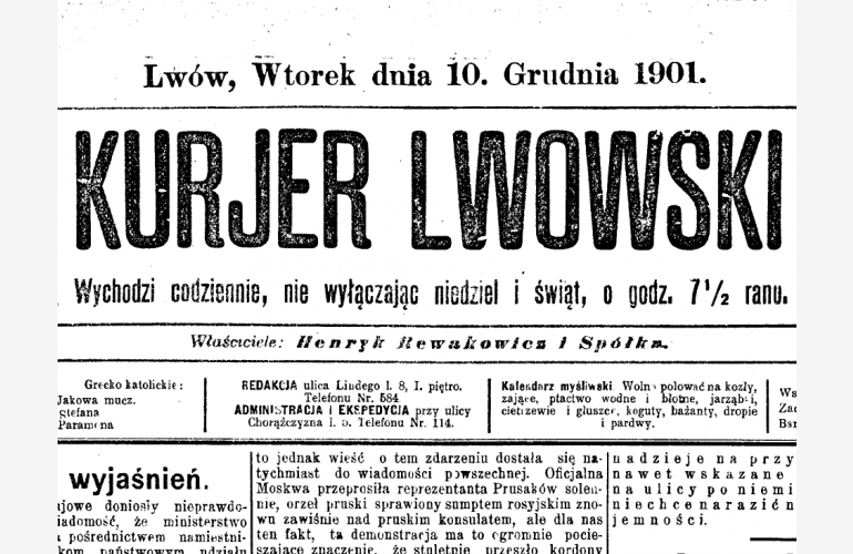 «Tarnopol (…). W niedzielę 5. bm. odbył się tu w sali «Sokoła» bardzo udatny koncert na dochód piśmiennictwa ludowego. Wynik finansowy koncertu niestety nie był równoległy z efektem artystycznym publiczności było mało. Nasze życie towarzyskie upośledza w wysokim stopniu rozłam, jaki zapanował między inteligencją polską a ruską. Tylokrotnie opisany fakt zdjęcia portretu Kościuszki w sali «Sokoła», rozpłomieniono do gorączkowego hasła wzajemnego bojkotu. «Sokół» bojkotuje Rusinów, a Rusini Polaków, wskutek czego na publicznych naszych koncertach i widowiskach w «Sokole» są zwykle pustki».