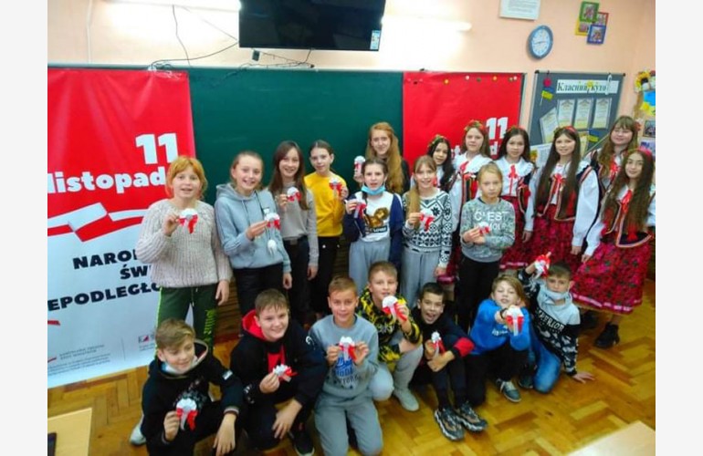 Następnego dnia obchody 102. rocznicy odzyskania przez Polskę niepodległości odbywały się w Tarnopolskiej Ogólnokształcącej Szkole nr 27, z którą współpracuje Stowarzyszenie. Uczniowie obejrzeli film o drodze Polski do niepodległości, rozwiązali test wiedzy o Polsce, zrobili kotyliony, zaśpiewali kilka pieśni po polsku. Wszyscy świetnie się bawili na zajęciach poprowadzonych przez Marię Bobryk.