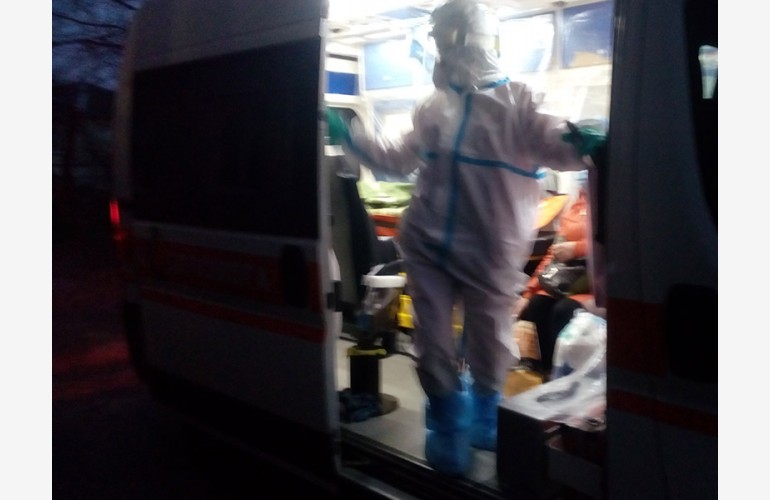 Felczerka rozpakowała zupełnie nowy «skafander», pomogła założyć dołączoną maseczkę i czapkę. Ubierając się w strój, zdążyłem przeczytać na etykiecie: «Wyprodukowano w Chinach». Lekarka przybyła w podobnym kombinezonie ochronnym, tyle że miała również osłony na buty i przyłbicę. W mieszkaniu już były nosze w postaci koca z uchwytami, bo na naszych klatkach nie da się obrócić ze zwykłymi noszami. Więc razem z kierowcą karetki chwyciliśmy tam, gdzie był większy ciężar i ponieśliśmy. Kobiety – sąsiadka i ratownik medyczny – również niosły razem z nami, bo w takiej sytuacji we dwójkę nie dalibyśmy sobie rady.