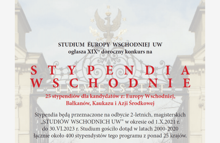 Studia będą trwały od 1 października 2021 r. do 30 czerwca 2023 r. – informuje Studium Europy Wschodniej Uniwersytetu Warszawskiego.