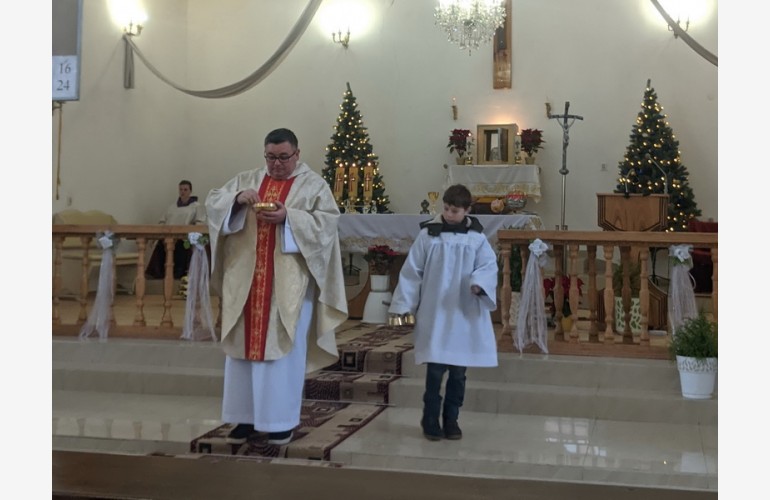 Święta Bożego Narodzenia w Dubnie rozpoczęły się 24 grudnia od uroczystej mszy świętej z udziałem wiernych różnych wyznań, której przewodniczyli proboszcz ks. Grzegorz Oważany wspólnie z o. Andrijem Kowalem, proboszczem parafii Wniebowstąpienia Pańskiego Ukraińskiego Kościoła Greckokatolickiego.