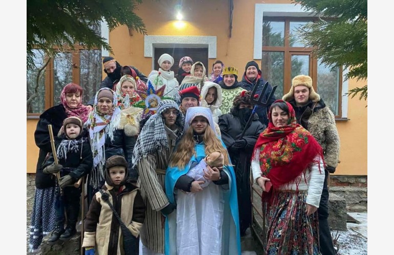 Przedstawiciele Towarzystwa wyszli na scenę przebrani za bohaterów jasełek oraz w polskich strojach. Zespół zaśpiewał po polsku kolędę «Gdy się Chrystus rodzi», a po ukraińsku składał życzenia z okazji Nowego Roku i Bożego Narodzenia.
