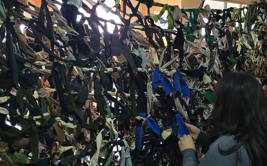 Mieszkańcy Łucka spotykają się w określonym miejscu, aby wspólnie robić siatki maskujące, które zostaną przekazane wojskowym. Będą one służyć żołnierzom do osłony sprzętu podczas wojny rosyjsko-ukraińskiej.