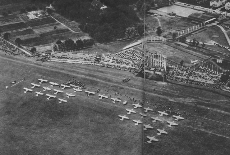 Ceremonia otwarcia Challenge 1934 na lotnisku mokotowskim w Warszawie. Źródło: Polska lotnicza, 1937