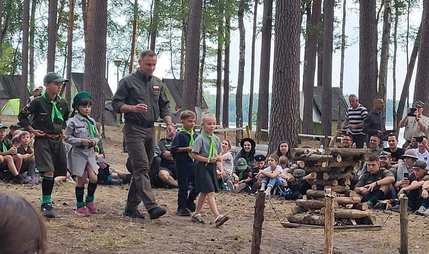 Później było wspólne ognisko, które zapalił prezydent wraz z zuchami. Każda z drużyn przekazała chustę swojej drużyny na pamiątkę prezydentowi Polski.