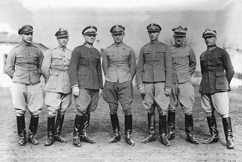 Polska ekipa jeźdźców przed wyjazdem na zawody w Nicei i w Rzymie. Rotmistrz Edmund Chojecki trzeci z lewej; Grudziądz, 1926 r.