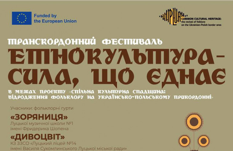 25 czerwca w Pałacu Kultury miasta Łucka (ul. Bohdana Chmielnickiego 1) będzie miał miejsce festiwal transgraniczny «Etnokultura – siła, która nas łączy!».