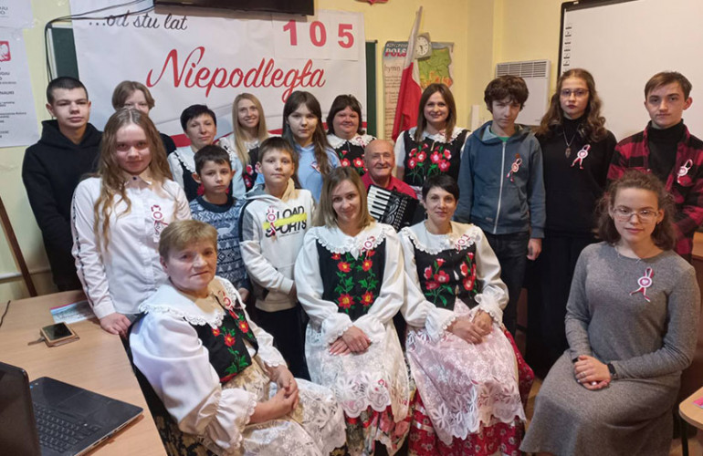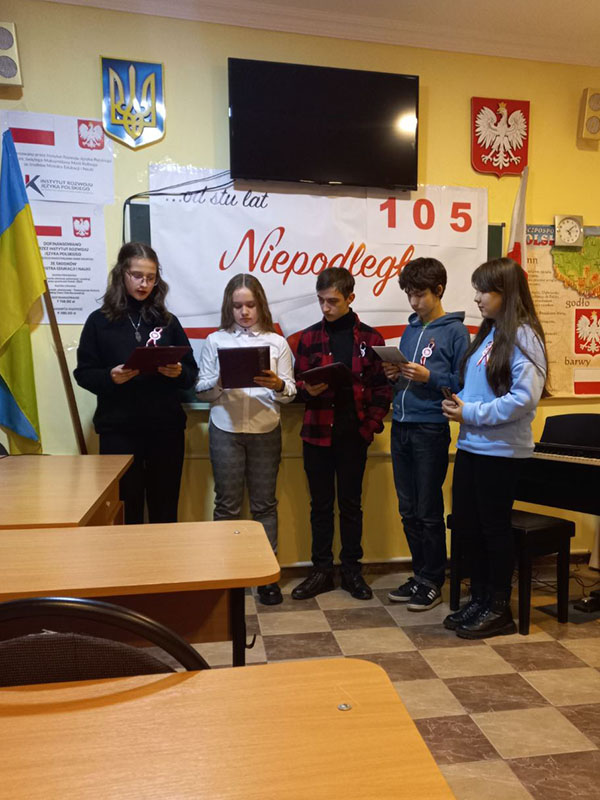 Uczniowie sobotnio-niedzielnej szkoły języka polskiego działającej przy Towarzystwie Kultury Polskiej Ziemi Zdołbunowskiej postanowili także uczcić to narodowe święto.