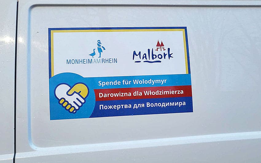 Przedstawienie przedstawicieli Włodzimierza i Monheim am Rhein odbyło się w czerwcu ub.r. podczas spotkania w celu podpisania umowy partnerskiej z Malborkiem. Jednym z problemów poruszonych wówczas przez Ihora Palonkę, mera Włodzimierza, przed delegacjami z różnych części Europy było zapotrzebowanie na pojazdy do użytku wojskowego.