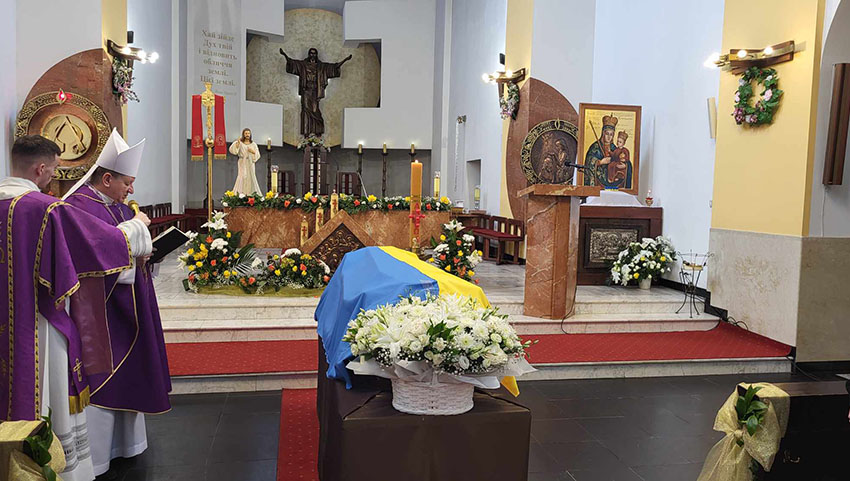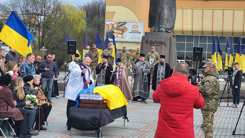 Wczoraj pożegnano go w jego rodzinnym mieście. Liturgii w kościele Świętych Apostołów Piotra i Pawła oraz Miłosierdzia Bożego, gdzie Andrij był parafianinem, przewodniczył biskup Witalij Skomarowski, ordynariusz diecezji łuckiej Kościoła Katolickiego na Ukrainie. Mszę koncelebrowali kapłani dekanatu rówieńskiego diecezji łuckiej.