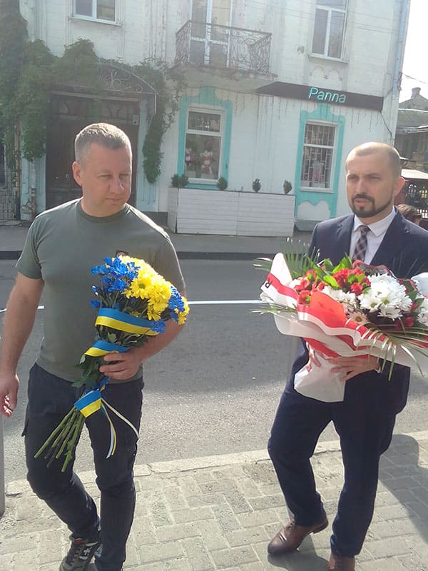 Michał Banaś i Wiktor Szakyrzian wspólnie złożyli kwiaty pod pomnikiem Symona Petlury w Równem.
