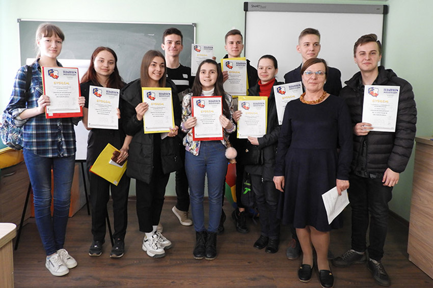 Marianna Seroka z uczestnikami «Triathlonu Intelektualnego», 2019 р.