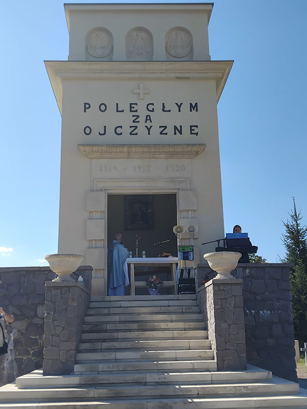 Zgromadzeni wzięli udział we mszy w intencji poległych za Ojczyznę odprawionej w kaplicy-mauzoleum Wojska Polskiego przez księdza Andrzeja Maliga, proboszcza parafii Miłosierdzia Bożego i Matki Bożej Nieustającej Pomocy w Tarnopolu. W ten sposób wszyscy oddali hołd żołnierzom polskim poległym w okresie I wojny światowej oraz wojny polsko-bolszewickiej.