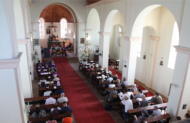 Wnętrze kościoła pw. Ducha Świętego w Maniewiczach, 2019 r. Zdjęcie Romana Pawluka