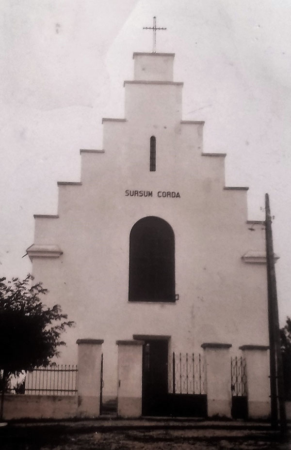 Główna elewacja kościoła jest akcentowana dużym półkoliście zamkniętym oknem i była niegdyś udekorowana napisem łacińskim «Sursum Corda», który nie zachował się do dziś.