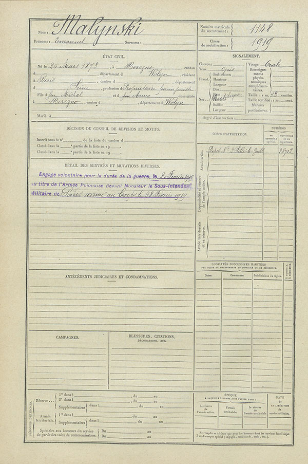 Emanuel Małyński. Ewidencja żołnierzy Armii generała Hallera. Źródło: Wojskowe Biuro Historyczne w Warszawie