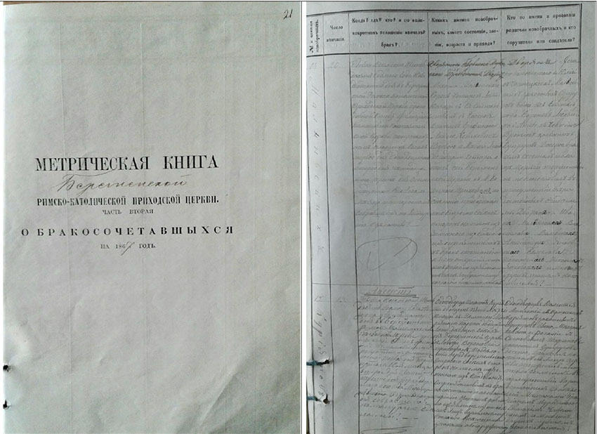 Księga metrykalna parafii wyznania rzymskokatolickiego diecezji łucko-żytomierskiej w Bereźnem z 1867 r. Źródło: Państwowe Archiwum Obwodu Rówieńskiego