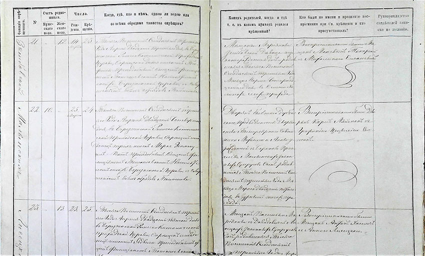 Księga metrykalna parafii wyznania rzymskokatolickiego diecezji łucko-żytomierskiej w Bereźnem z 1873 r. Źródło: Państwowe Archiwum Obwodu Rówieńskiego