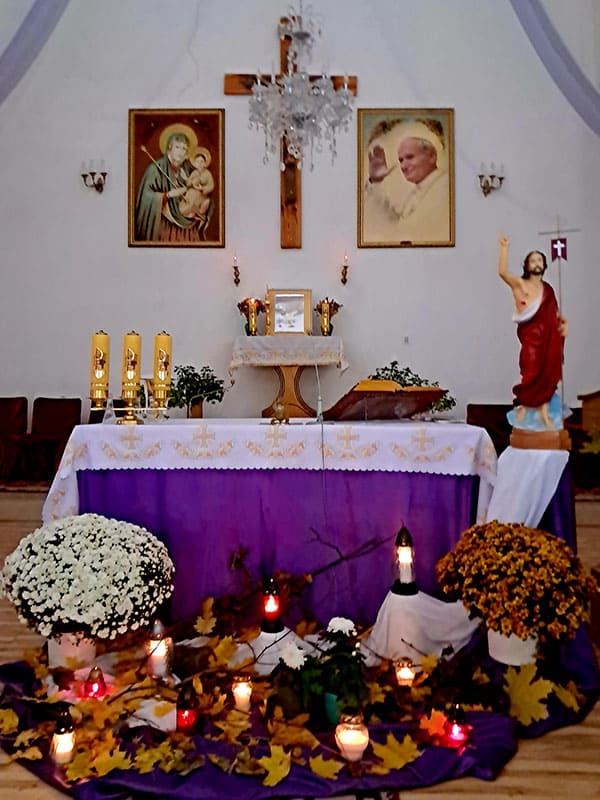 Z okazji Uroczystości Wszystkich Świętych diakon Petro Hordijenko przygotował specjalne dekoracje w kościele.