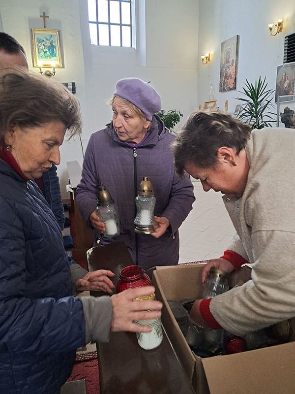 Po nabożeństwie parafianki Ałła Owsijuk i Tetiana Kondras rozdały zgromadzonym znicze przekazane ze Świdnika i Lublina, aby zapalili je na dubieńskich cmentarzach.