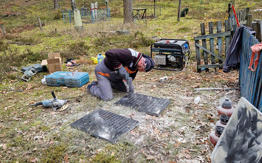 Po żmudnym czyszczeniu tablic ze starego kleju oraz postumentu, tablice zostały zamontowane z powrotem. Naprawiono też ogrodzenie a także część z przewróconych ze starości krzyży. Po tych wszystkich pracach ksiądz Władysław Łukasiewicz SAC, były proboszcz z Sarn, który obecnie pełni posługę kapłańską w Brzuchowicach, odprawił mszę świętą w intencji spoczywających na tym cmentarzu.