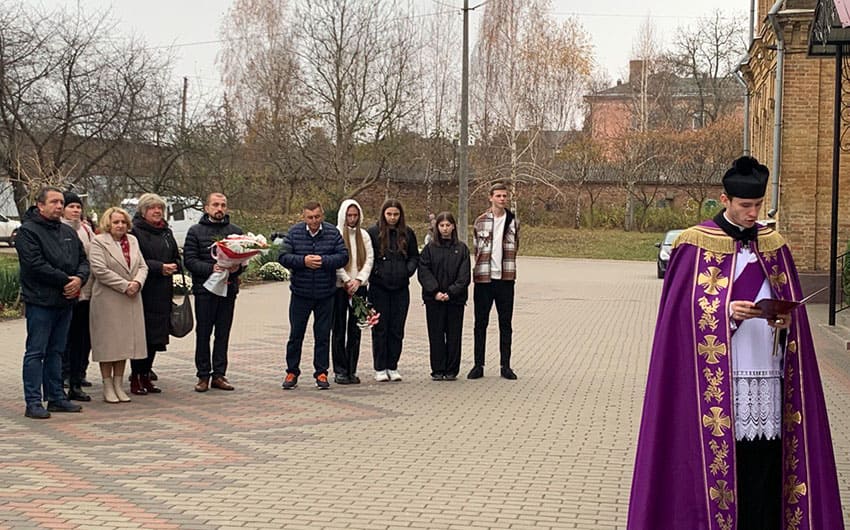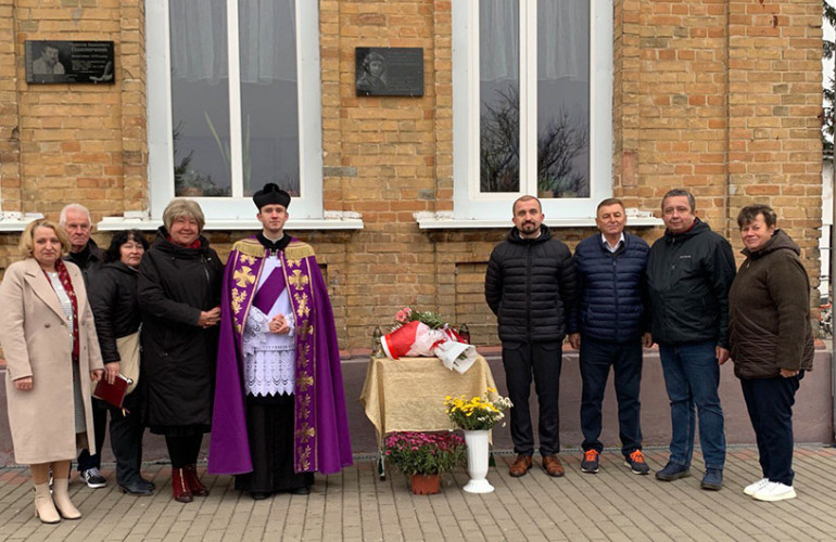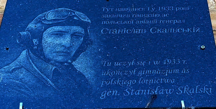 Wydarzenie rozpoczęto modlitwą i złożeniem kwiatów przy tablicy pamiątkowej znajdującej się na budynku szkoły. Napis w języku ukraińskim i polskim głosi: «Tu uczył się i w 1933 r. ukończył gimnazjum as polskiego lotnictwa gen. Stanisław Skalski».