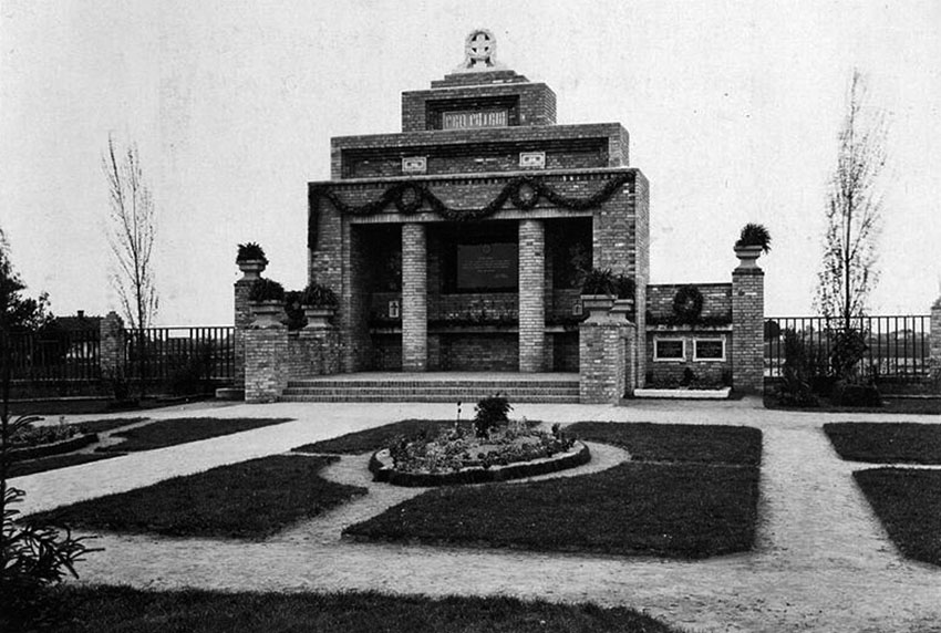 Austriacki pomnik poległych «Pro patria» z czasów I wojny światowej. 1916 r. Obecnie w jego miejscu położona jest Szkoła nr 5. Public domain