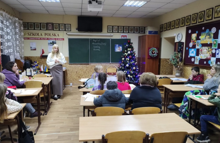 Następnie odbyły się zajęcia, na których jak zawsze był czas na czytanie, słuchanie, mówienie i pisanie, aby podnieść poziom znajomości języka polskiego oraz nadrobić ewentualne zaległości. Panie Irena i Waleria przygotowały także zajęcia o grudniowych tradycjach i obyczajach polskich związanych ze Świętym Mikołajem, adwentem, Bożym Narodzeniem, Sylwestrem oraz Nowym Rokiem.