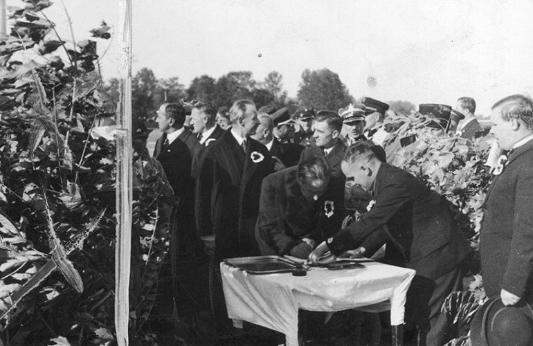 Na głównym zdjęciu: Uroczyste otwarcie stadionu im. Marszałka Józefa Piłsudskiego w Łucku, 24.09.1933 r. Wojewoda wołyński Henryk Józewski wpisuje się do księgi pamiątkowej. Źródło: Narodowe Archiwum Cyfrowe