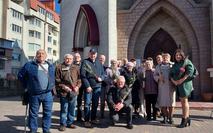 Po mszy parafianie składali sobie nawzajem życzenia oraz robili wspólne zdjęcia przed kościołem. Członkowie Polskiego Centrum Kultury i Edukacji im. prof. Mieczysława Krąpca w Tarnopolu również wykonali tradycyjne wspólne zdjęcie z poświęconymi palmami.
