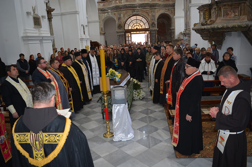 Mszy pogrzebowej w kościele Świętego Antoniego w Zbarażu przewodniczył biskup pomocniczy archidiecezji lwowskiej Kościoła Rzymskokatolickiego na Ukrainie Edward Kawa. Za poległego obrońcę Ukrainy modlili się duchowni różnych wyznań chrześcijańskich oraz setki mieszkańców miasta. Poinformowała o tym Zbaraska Rada Miejska.