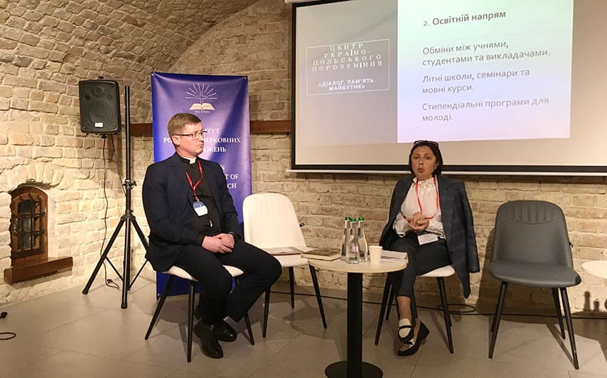 Podczas prezentacji ks. kanonik Paweł Chomiak i dr. hab. Oksana Kaliszczuk przedstawili koncepcję stworzonego przez nich Centrum Ukraińsko-Polskiego Porozumienia. Przedstawiając planowane kierunki działalności Centrum, dr. hab. Oksana Kaliszczuk mówiła również o roli Kościoła w ukraińsko-polskim pojednaniu historycznym.