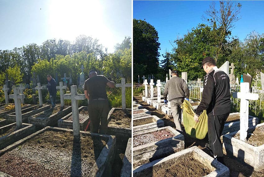 Po wcześniejszym opryskaniu otoczenia grobów łatwiej było teraz sprzątać uczestnikom zwiędłe chwasty, gałęzie i śmieci. Uporządkowano kwaterę wojskową, policyjną oraz dziecięcą, groby harcerskie oraz cywilnych osób. Pogoda dopisała, więc prace poszły szybko.