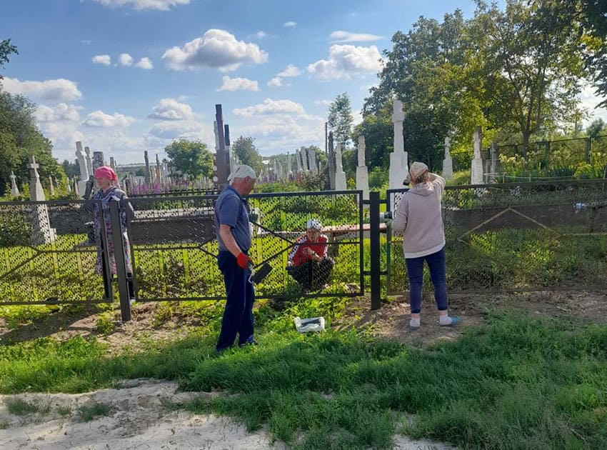 Członkowie Nadzbruczańskiego Stowarzyszenia Kultury i Języka Polskiego sprzątają cmentarz w Sidorowie kilka razy w roku. Tym razem akcję porządkowania zorganizowali wspólnie ze starostą Mykołą Moskalukiem, który zwołał mieszkańców wsi.