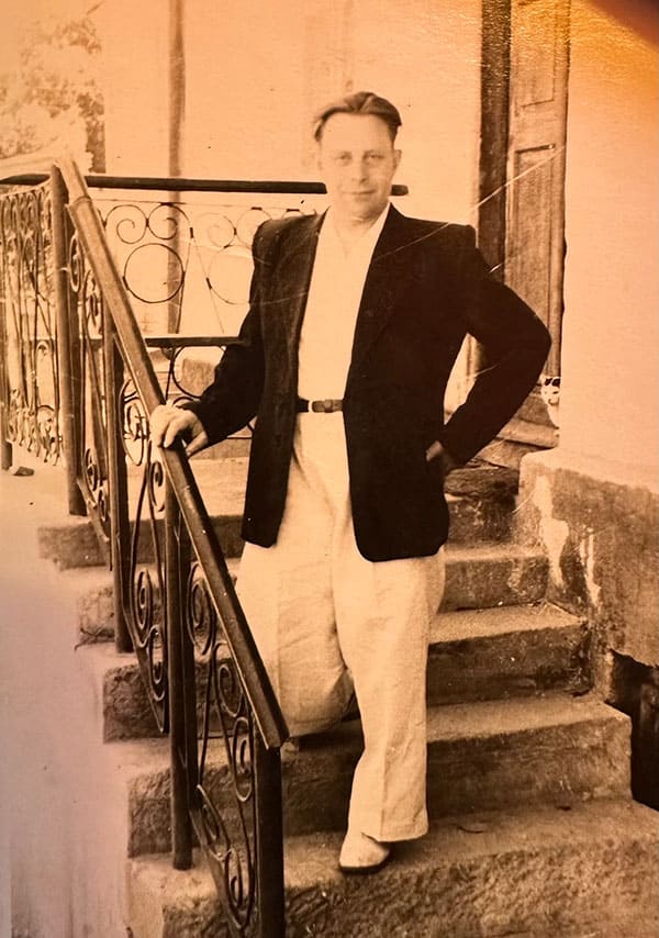 Bronisław Bielica na schodach swojego domu. Krzemieniec, lata 50. XX w.