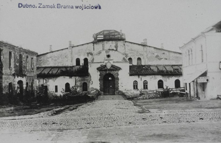 Na głównym zdjęciu: Dubno, zamek, brama wejściowa. Pocztówka 1930 r. Public domain