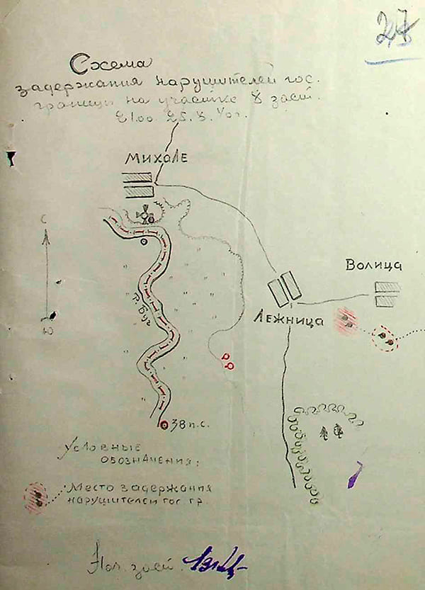Schemat zatrzymania sprawców naruszenia granicy Bały i Fijoła
