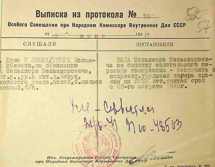Sprawa została skierowana do Kolegium Specjalnego NKWD ZSRR. Zgodnie z protokołem nr 59 z dnia 5 czerwca 1941 r., Melchior Bała i Stanisław Fijoł zostali skazani na osiem lat w poprawczym obozie pracy, licząc od 26 sierpnia 1940 r. Mieli odbywać karę w Siewwostłagu.