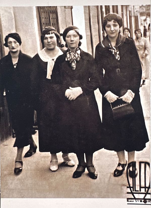Władysława Misztal (po ślubie Chytra, pierwsza z prawej) i jej siostra Stefania spacerują ulicą 3 Maja. Równe, 1937 r.