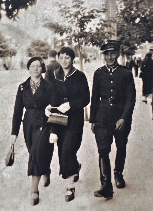 Od lewej: siostry Stefania Misztal i Władysława Misztal (po ślubie Chytra) z żołnierzem rówieńskiego garnizonu. Równe, 1936 r.