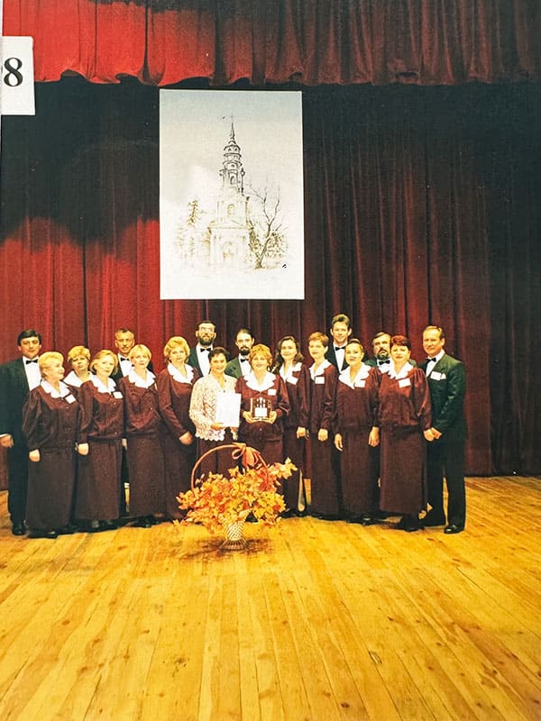 Chór «Serafin». Czesław Chytry w drugim rzędzie pośrodku. Chełm, 1998 r.