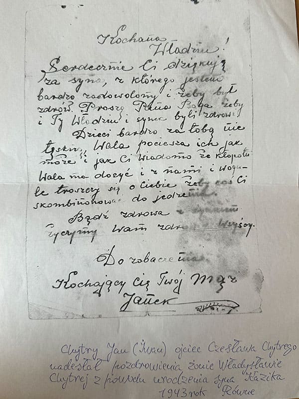 List Jana Chytrego z gratulacjami dla żony Władysławy z okazji narodzin ich syna Kazimierza. 1943 r.